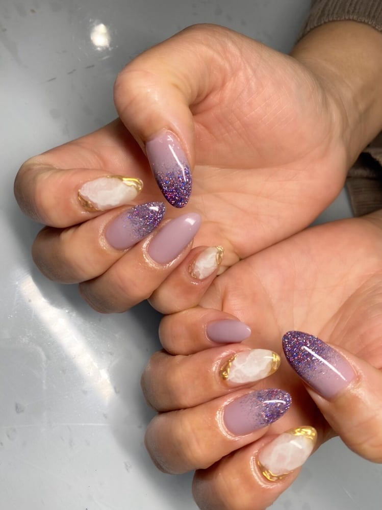 パープルのラメに白の大理石♡ ゴールドが絶妙✨