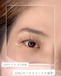LEDマツエク120本で、全体にバランス良く装着し、目尻はJカールでメーテル風に🫧