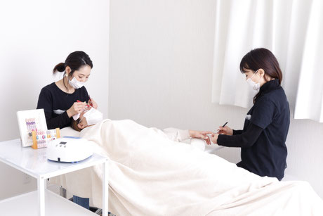 アイラッシュKでは、まつげエクステと同時にネイル(ジェルネイル)を施術することができます。専属のネイリストがお客様のご希望にそったデザインをご提案します。また、デザインの持ち込みも可能です。