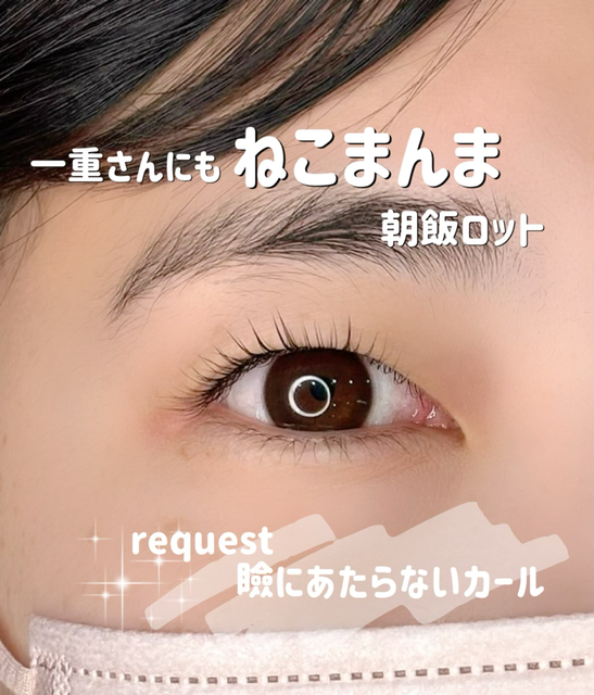一重さんにも、しっかりフィット🤍 ねこまんま朝飯ロットで 根元から自然に立ち上がるまつ毛に𓂃𓈒𓏸 design/ueki mayumi 「瞼に当たらないカールがいい」 そんなリクエストにもぴったり◎ 一重・奥二重さんも まぶたの形に合わせて ロットを選ぶオーダーメイド施術✨ ぜひ一度ご相談ください♡