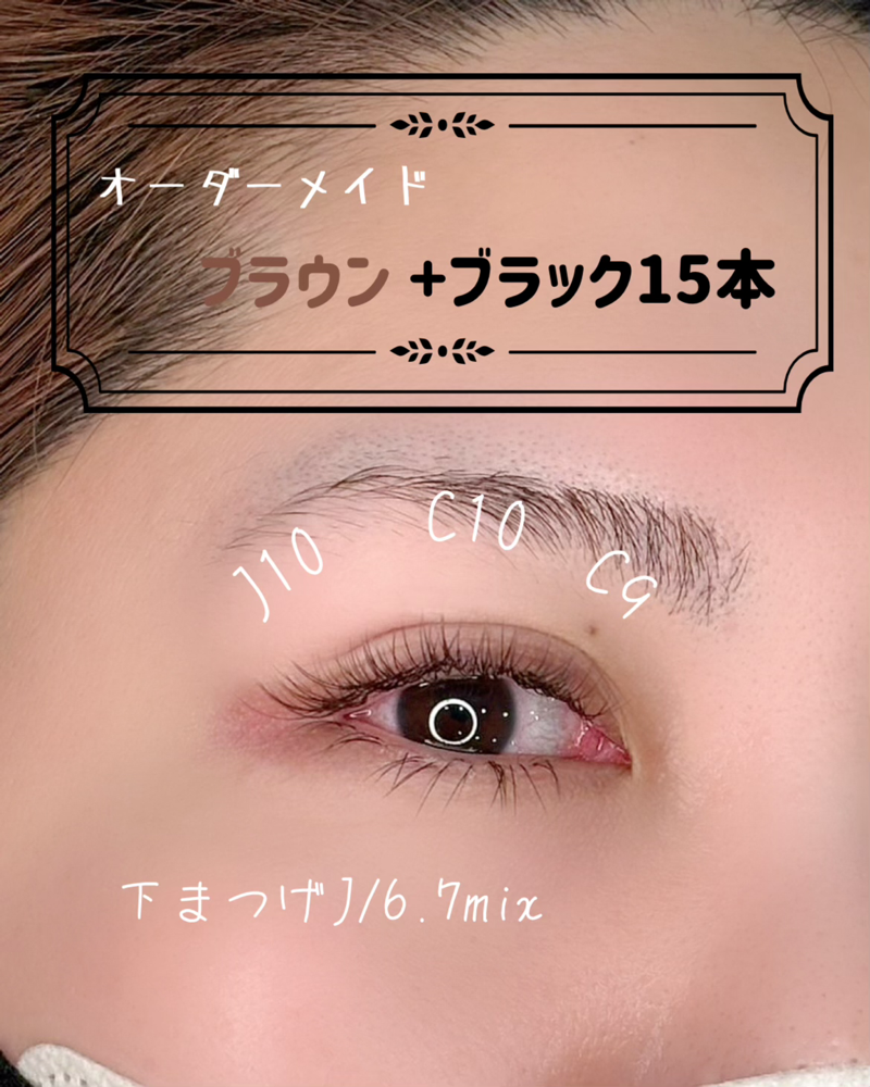 🤎オーダーメイドデザイン🤎 ブラウン+ブラック15本 design/ueki mayumi ブラウンでやわらかく、 ブラック少量足してボリューム感の調整を👀✨ カラーMIXで“ナチュラルだけど印象的”な仕上がりに🤍 ✔︎ J10 / C10 / C9 ✔︎ 下まつげ J6・7 mix ナチュラルだけど、ちゃんと存在感。 お客様の目の形・雰囲気に合わせて 細かくデザイン調整しています🌿